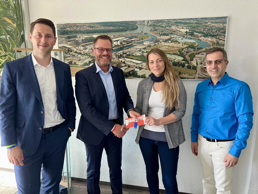 v.l.n.r.: Dieter Engel, Markus Dorn (kloeckner metals), Anke Rößler-Grimm (Geschäftsführerin Kübler), Robert Mutlu (Niederlassungsleiter Kübler Mannheim)